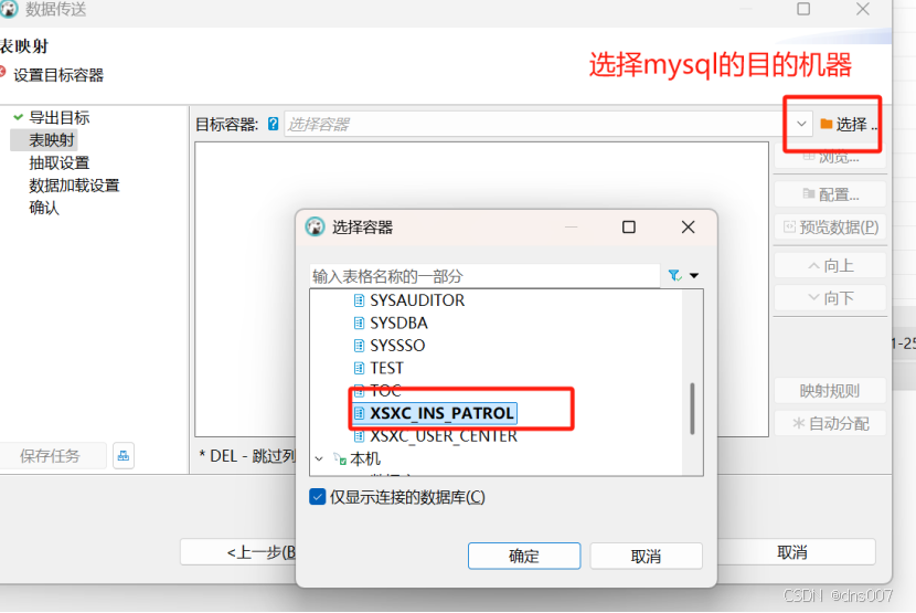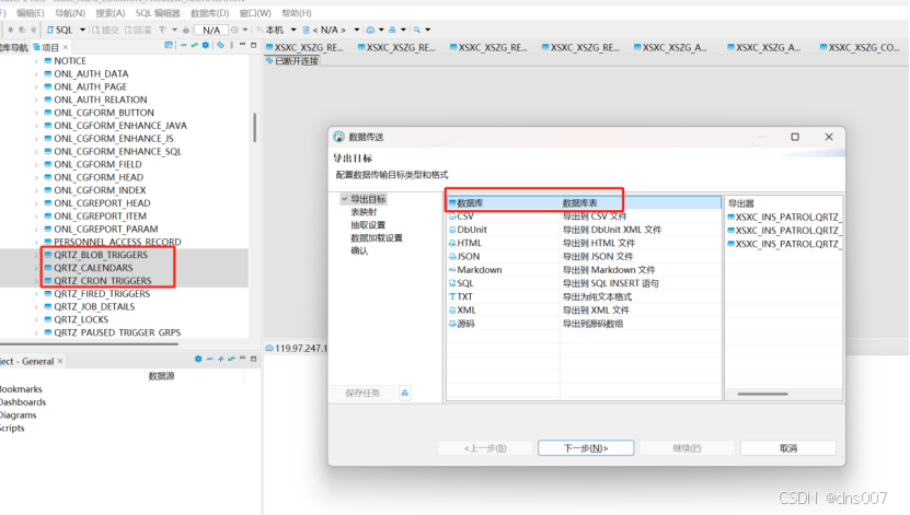 1.用dbeaver 分别连接源 达梦数据库和 目的mysq数据库。4.下一步,选中目的数据库的连接,也就是需要迁移的目的数据库。利用dbeaver工具 迁移达梦数据库到msyql数据库。3.选中需要迁移的表,点击导出,选中第一项数据库。2.在目的mysql数据库建立空的数据库。5.然后直接下一步即可完成。
