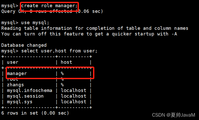 例子:创建一个用户叫wang5 然后赋予角色manager,操作如下