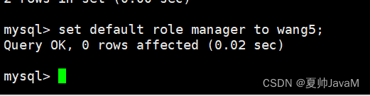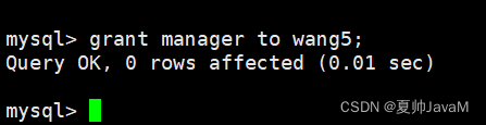 赋予wang5角色manager 注意这个是通过root用户实现的