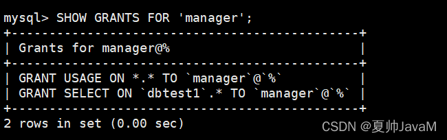 例子:为manager角色授予查看dbtest1数据库下所有表的权限