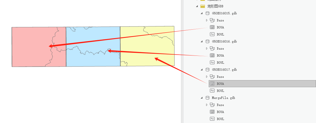 有些GDB数据库会按分幅或行政区划进行分开储存,尤其是一些地形测绘或国情地理数据。