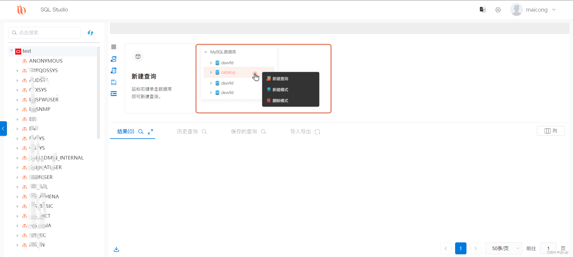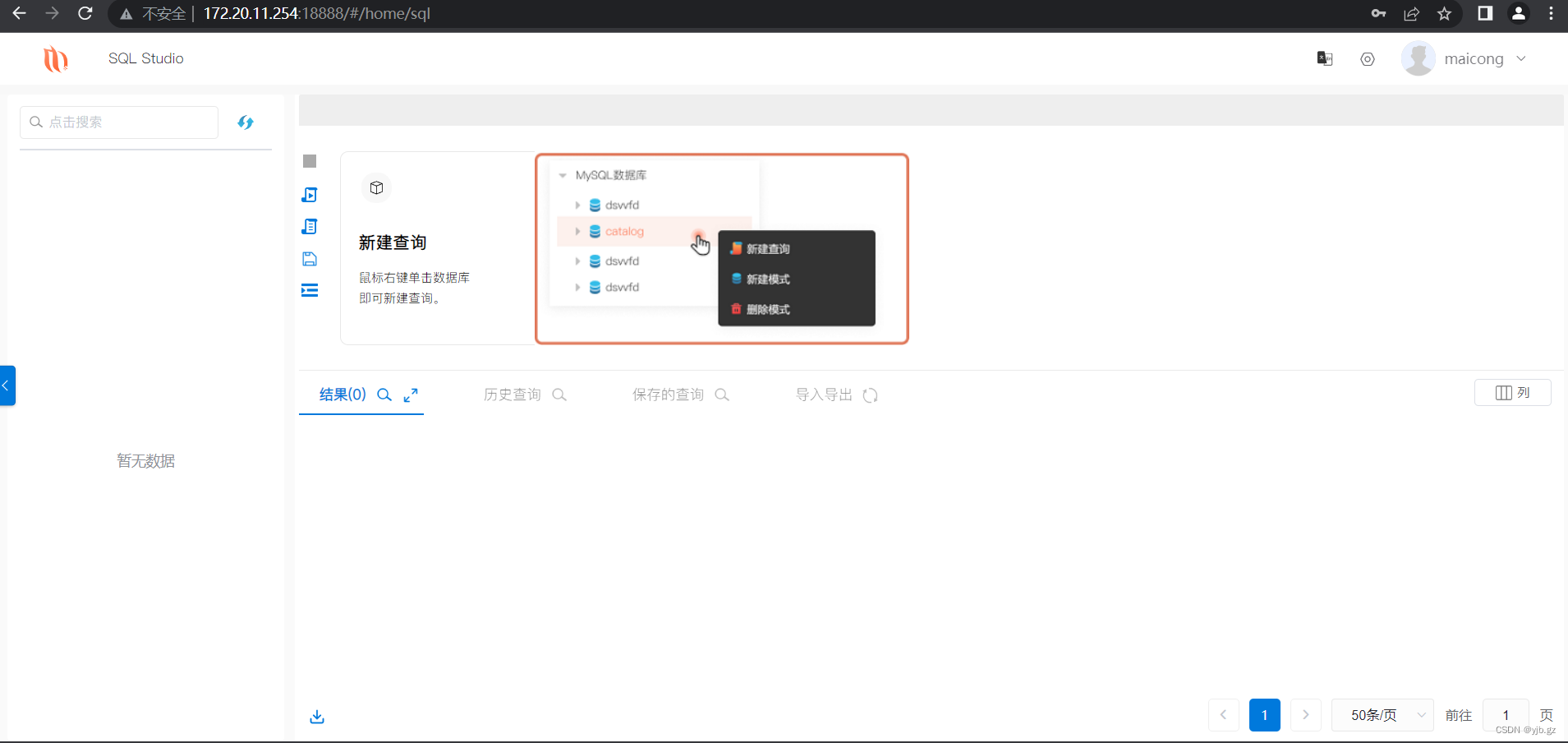 添加数据源保存成功后,点击“SQL Studio”返回主页,便可进行简单sql操作。
