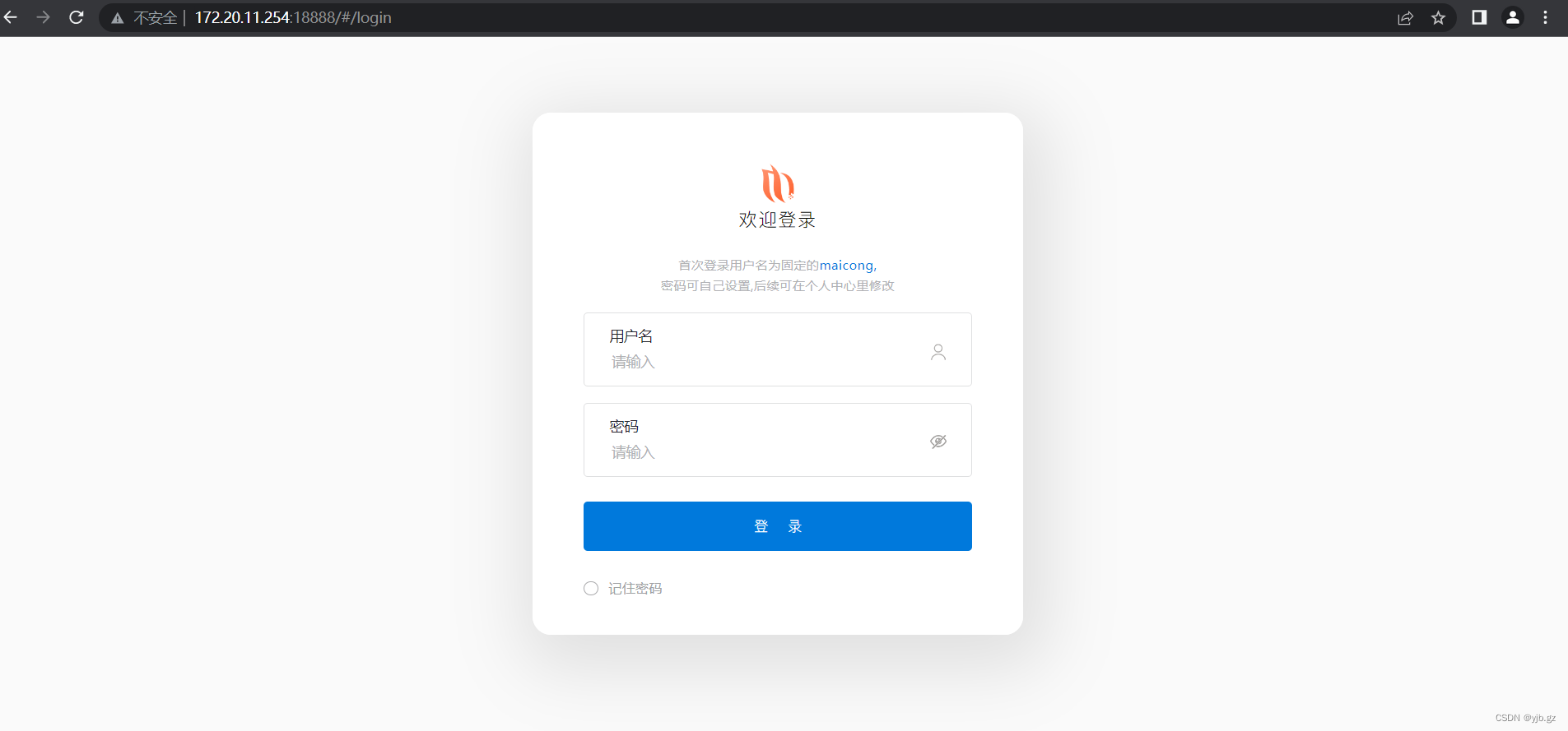 服务启动以后,默认端口:18888,浏览器中输入ip:端口即可访问。默认端口查看/修改位置:安装目录下config/maicong.yaml