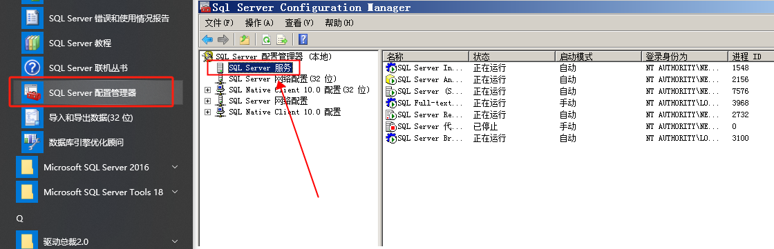 5,电脑开始菜单打开SQL server 配置管理器,打开后选择SQL服务,分别右键重新启动SQL Server和 SQL Server Browser。退出SQL配置管理器,重新打开SSMS选择SQL server 身份验证模式,输入登录名和密码连接进入数据库即可(这一步如果嫌麻烦不想设置,可以直接重启电脑来替代)。4,鼠标右键数据库服务器选择属性,进入服务器属性页面选择安全性,服务器身份验证选