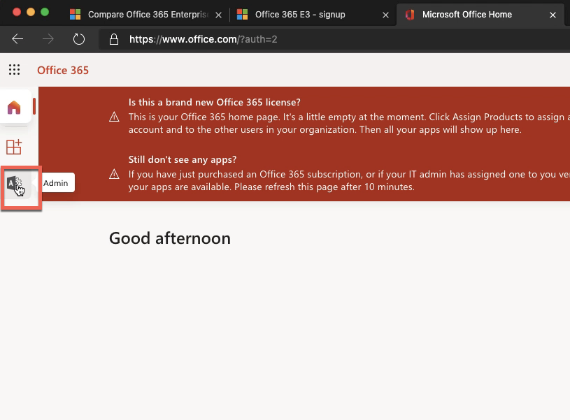 使用刚才创建的管理员密码,登陆office 后台:www.office.com