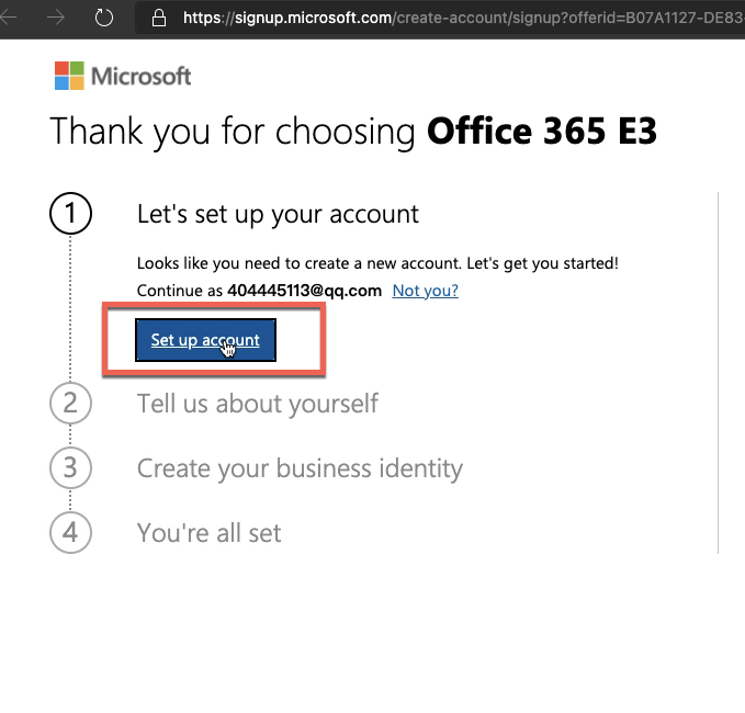 输入一个联系人邮箱,可以是qq邮箱等个人邮箱后点击set up account: