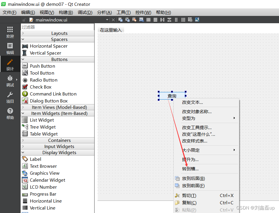 1.4 编辑mainwindow.ui文件添加按钮
