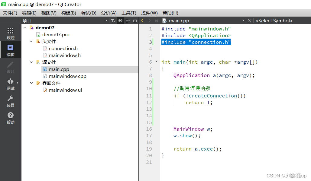 1.3 编辑main.cpp文件调用连接函数