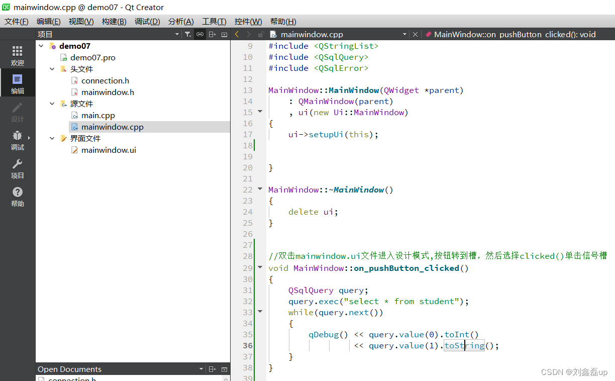 3.1 编辑mainwindow.cpp文件编写槽函数