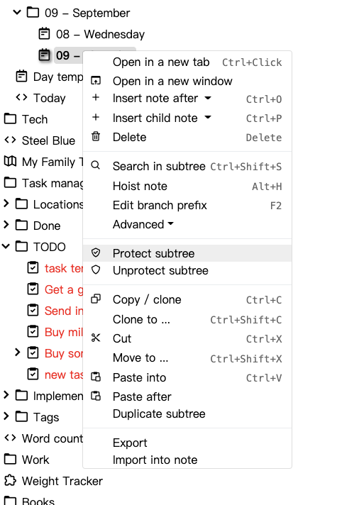 对于隐私的笔记也可以右键笔记选择Protected Session进行加密,之后访问该笔记就都需要密码才能继续