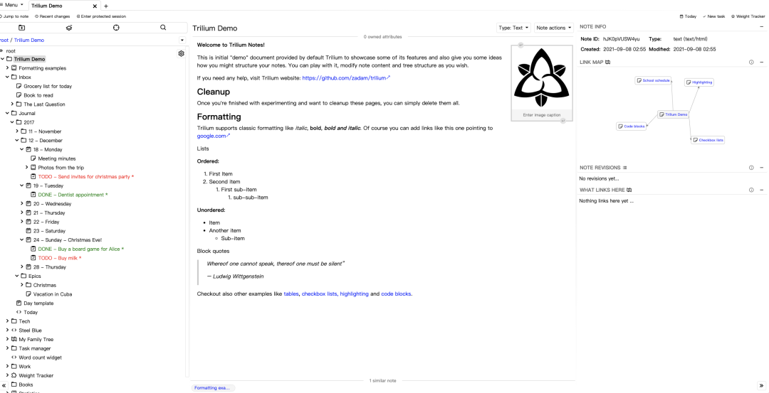 Trilium 的界面并不是最让人惊艳的,但足够轻盈简洁,能让信息不受阻碍直接呈现在眼前