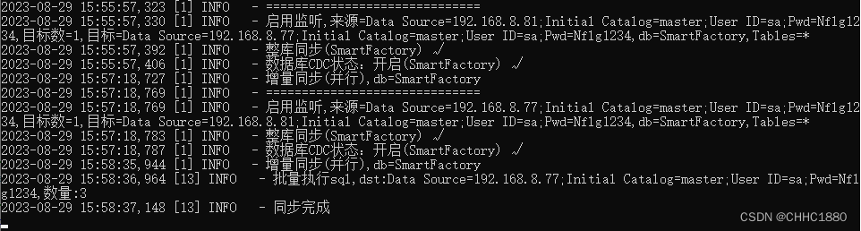 2. 根据不同的配置文件,加载不同的模式,多驱动(Drivers 1主1备-单向同步,1主1主-双向同步,2主1备-多库汇总),多机同步(DstConnect),多库同多表同步(SrcMap,dbsync2|*表示监听该数据库下的所有表),设置刷新时间(RefreshTime),是否启用(Enable),是否重置cdc数据(SrcUpdateCDC)// 查询cdc时间。Program.AddLo