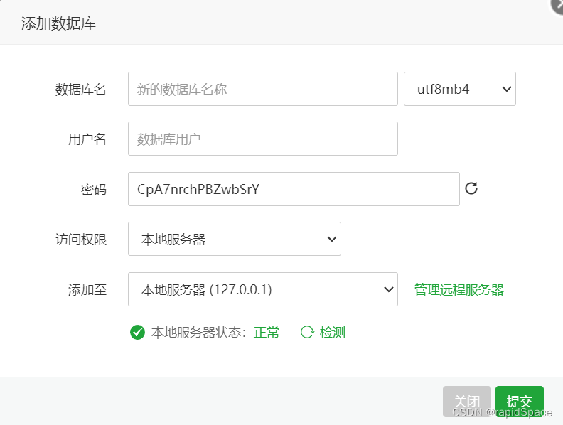 在宝塔新建数据库的时候报错:“本地服务器状态:异常”。