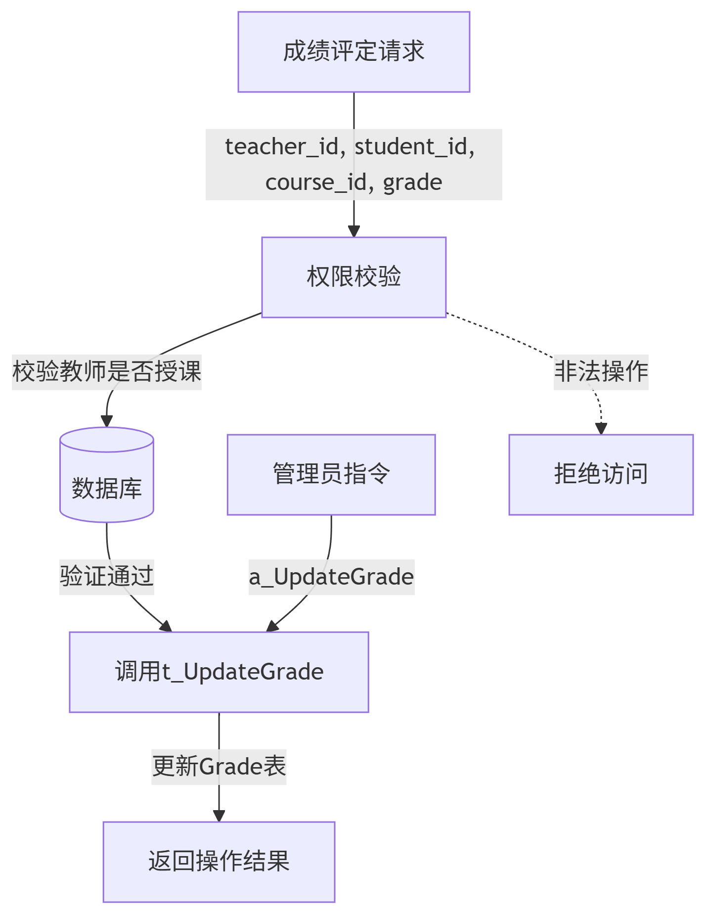 - 处理: 验证成绩范围和选课情况,更新Grade表