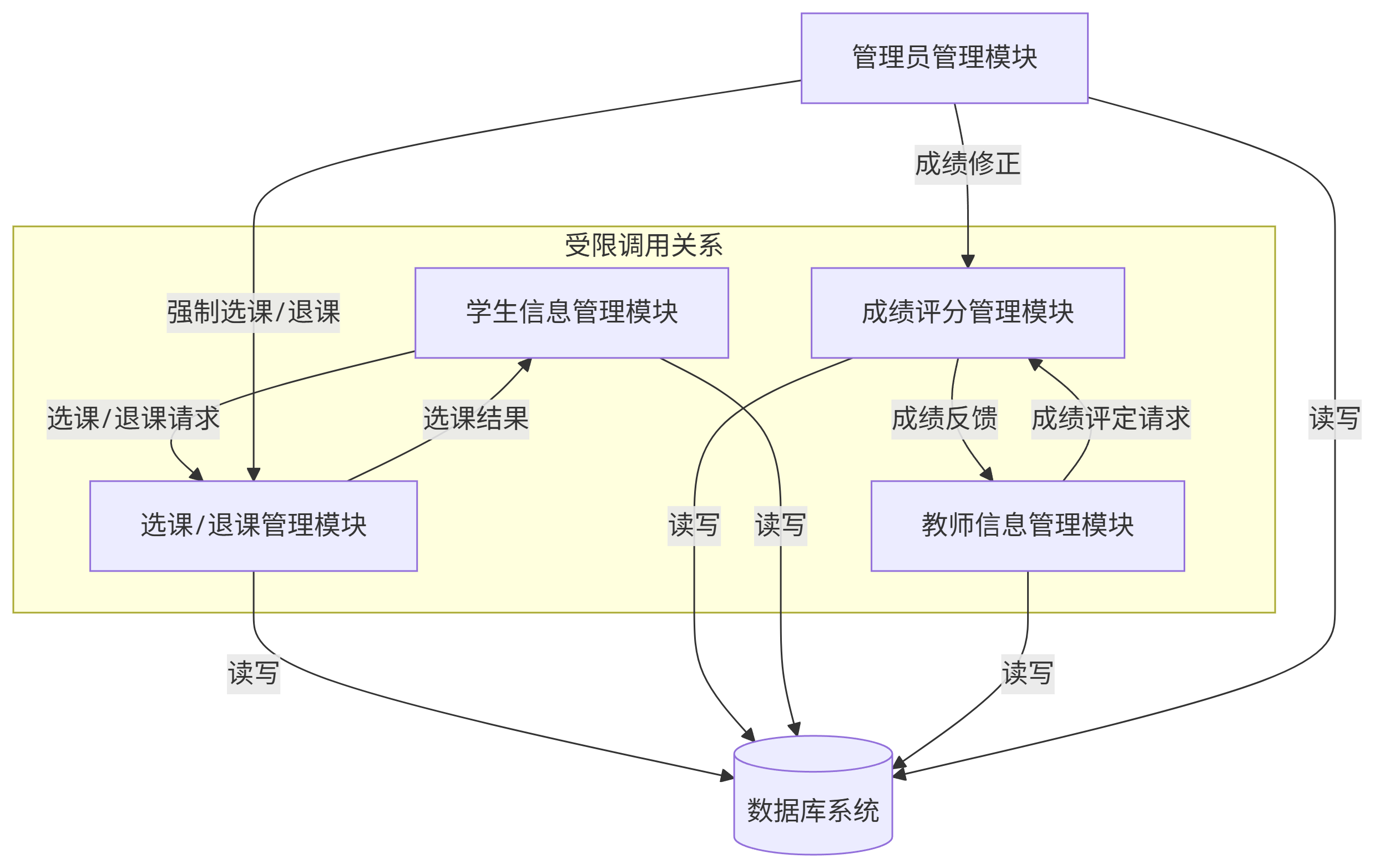 系统架构:采用模块化设计,功能分区明确(如教师管理模块、学生管理模块、课程安排模块、查询统计模块等),便于维护与后续扩展。
