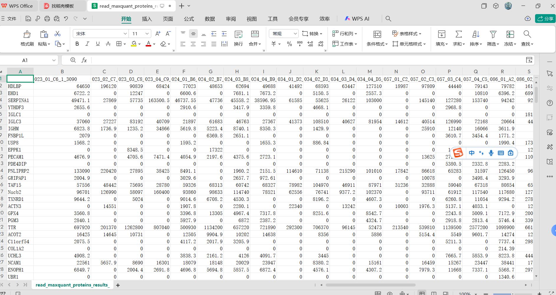 从Maxcount的搜库结果proteinGroups.txt文件中提取出蛋白组的表达矩阵