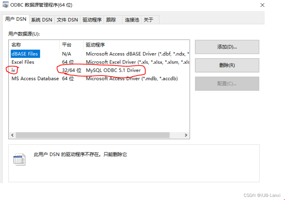 4、这时候就可以在ODBC数据源管理程序中看到刚才添加的Mysql数据库了
