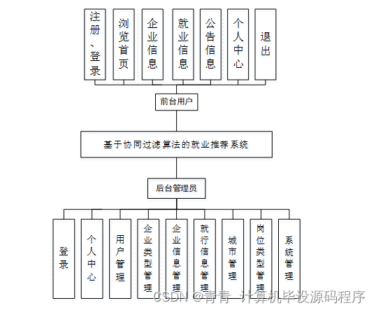 系统整体模块设计:系统分为管理员、用户,系统管理员有最大的权限,整体功能展示如图4-3所示。