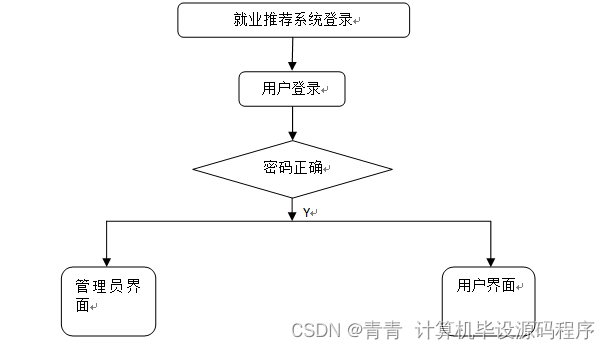 系统开发流程的分析是一个至关重要的过程,它是指通过系统的设计开发目的初衷、面向使用用户的范围、系统运行和操作的安全性、各种问题的处理以及后台数据的分析能力等各个角度,来对就业推荐系统进行设计、开发、搭建和调节,以保证该系统能够顺利的完成,达到预期的工作状态。上述每个环节、每个步骤一开始就要下足功夫,从各个方面、各个角度进行调查研究,进行大量的测试和评估,来保证就业推荐系统的正常和该系统的后台数据库的完整性以及安全性,从而把控系统所包含信息的安全性、确保信息进入、出口顺利过渡。然后,对系统和数据进行操作和分析,根据每一步的执行步骤,完成信息的流程图制作过程。