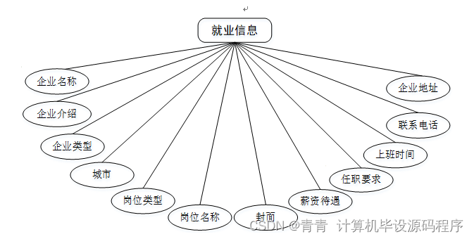 通过对就业推荐系统的主要功能信息进行规划并分为若干功能实体信息[14],实体信息将使用E-R图加以表示,本系统的主要功能实体图如图4-5、图4-6、图4-7所示。