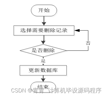 最后为删除信息页面。进入该页面后,用户可以对所要删除的信息进行选择,选择好删除的内容后,会有一个“是否确认删除”的提示框,操作者可以根据自己的意愿来选择“是”或“否”。完成上述操作,系统会自动的对删除的内容进行判断,如果符合删除要求则会成功删除数据记录,并且更新数据库的内容信息;如果删除的数据记录不符合要求,则会有一个“删除失败”的提示框,操作人员需要根据提示来进行修改,修改完成后重新删除知道删除成功。删除信息流程图如图3-3所示: