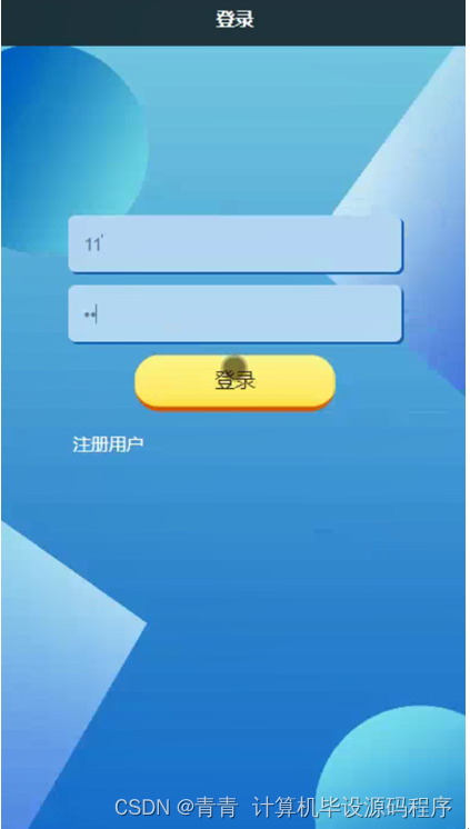 首先双击打开APP,连上网络之后会显示出本系统的登录界面,这是进入APP的第初始页面“登录”,能成功进入到该登录界面则代表APP开启是成功的,接下来就可以操作本系统所带有的其他所有的功能。用户登录界面如图5-2所示。