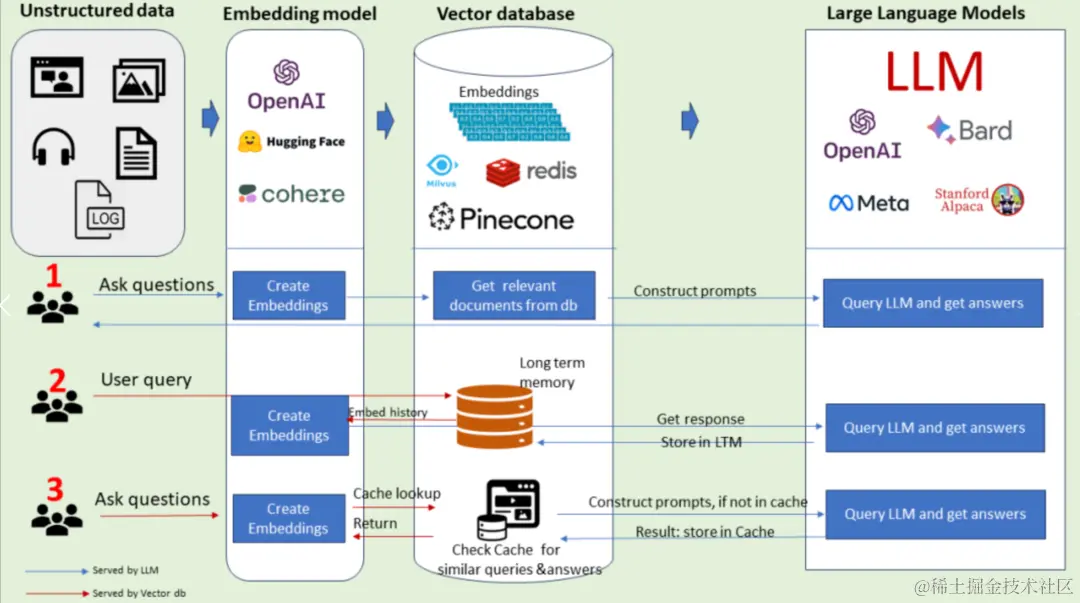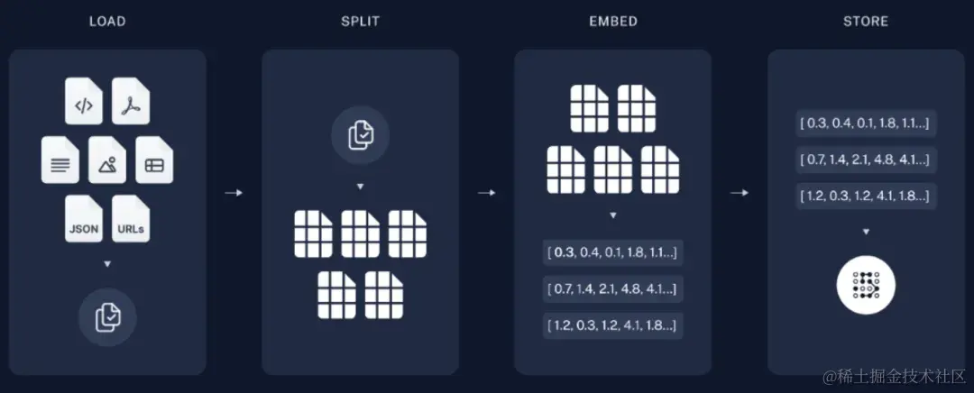 •向量:对拆分的数据块,进行 Embedding 向量化处理。