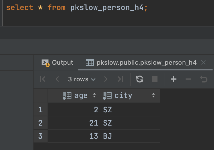 insert into pkslow_person_h(age, city) VALUES (2, 'SZ');