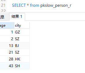insert into pkslow_person_r(age, city) VALUES (21, 'SZ');