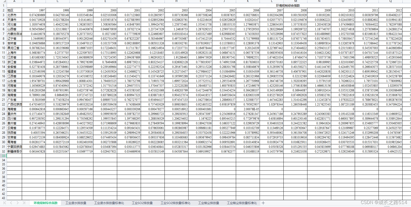 1997-2019年中国各省环境规制综合指数(无缺失值).xlsx: