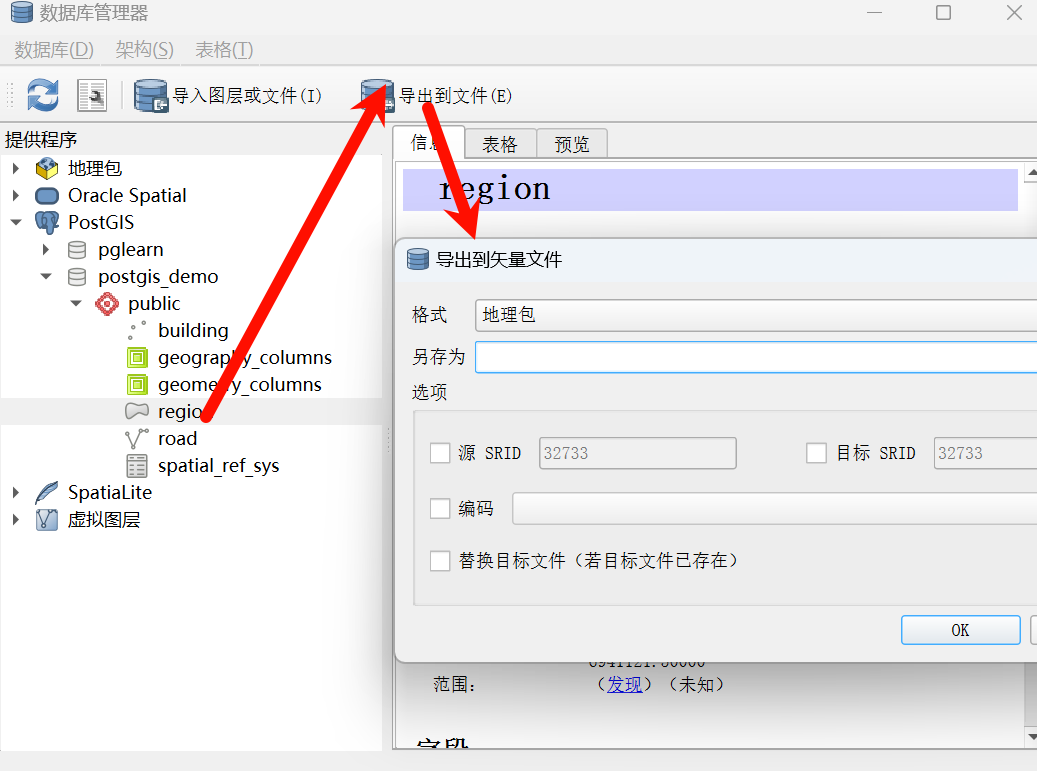 使用QGIS数据库管理器管理PostgreSQL数据库、导入导出数据