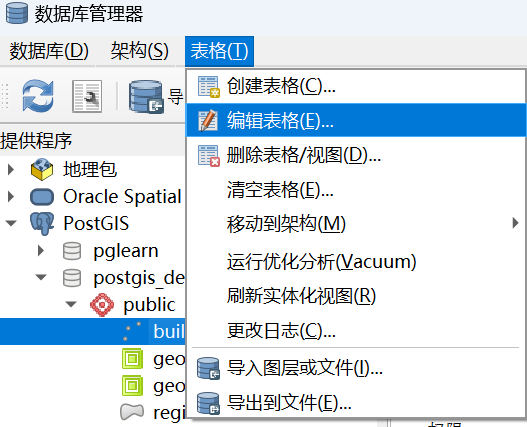 还可以直接编辑表格,选中需要编辑的表格,点击数据库管理器菜单栏中的编辑表格。