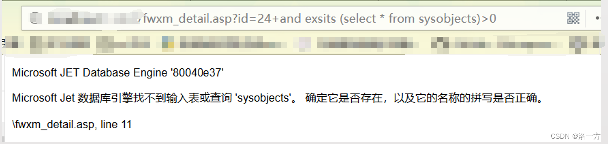 如下图, 结果表明目标服务器使用的不是sqlserver数据库(不存在sysobjects表)