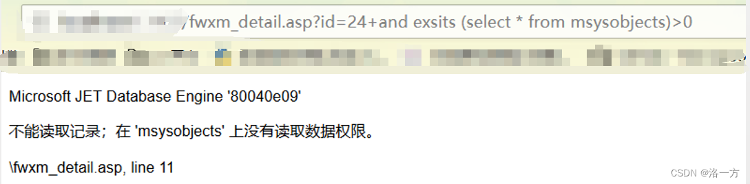 如下图,结果表明目标服务器使用的是Access数据库(存在msysobjects表)
