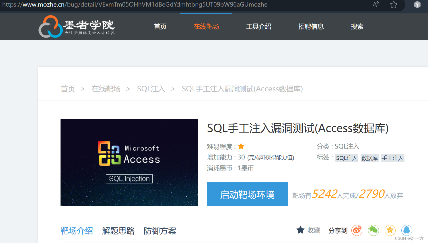 由于一方找不到合适的离线靶场,这里使用的是"墨者学院"网站中的在线靶场:
