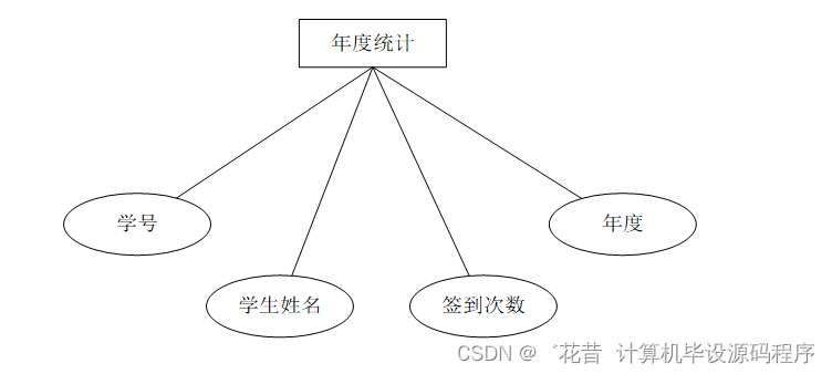 (b) 学生;进入系统可以实现系统首页、个人中心、签到信息管理、每周统计管理、年度统计管理等功能进行操作。学生用例图如图3-2所示。