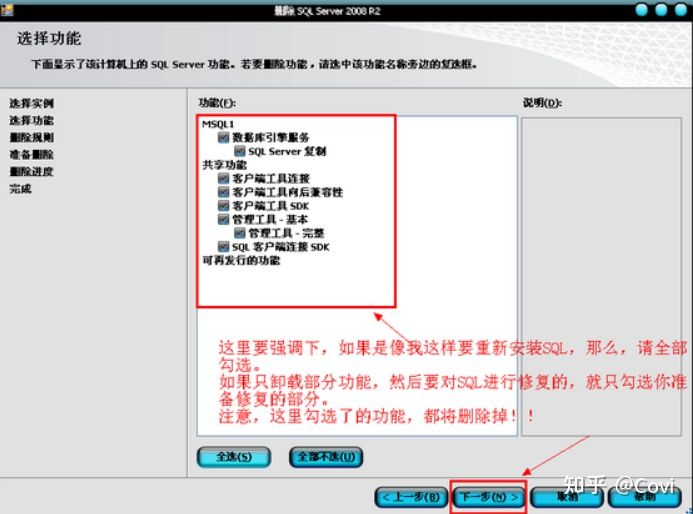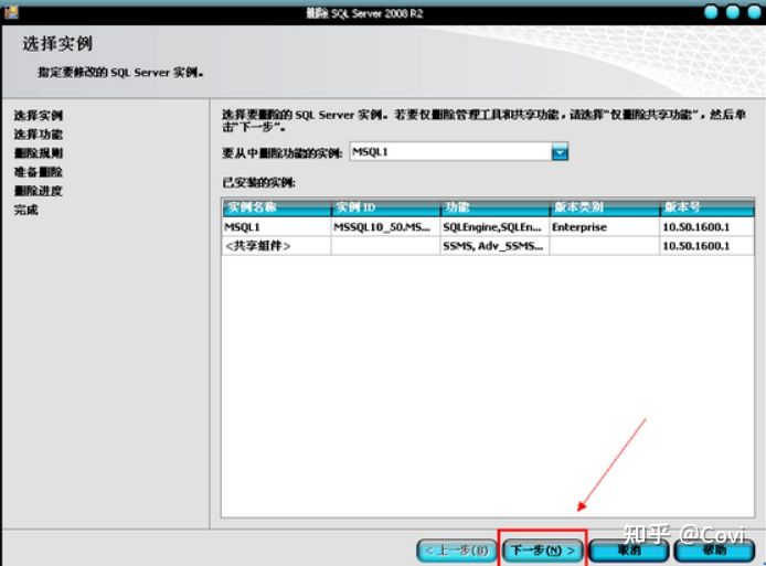 5、此处需要特别注意,到了”选择实例”这一项的时候,实例ID有多少个,就要删除多少次,也就是说如果实例ID有两个的话,那么这一轮删除完后,再回到Microsoft SQL Server 2008这里再卸载一遍。