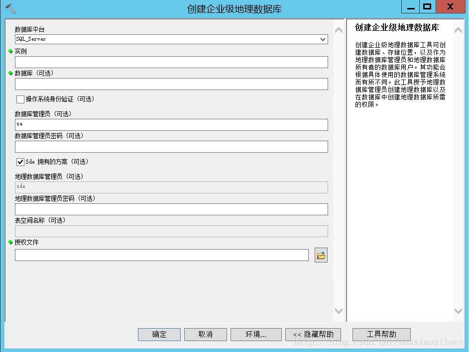 3、此处创建的企业级地理数据库,是建立在 数据库实例上的,因此一旦创建成功,实例中的所有表空间均可存储空间数据;