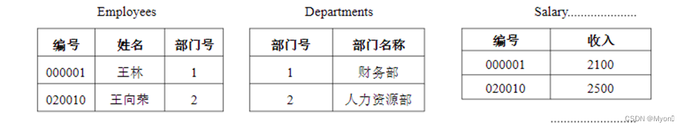 创建Employees表、Departments表和 Salary表。