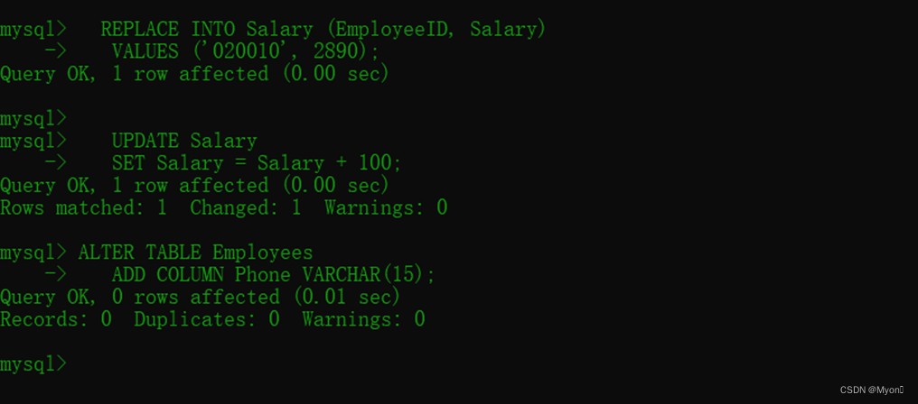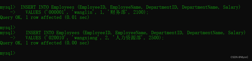 (2)掌握insert、update、delete命令实现对表数据插入、修改和删除等更新操作。