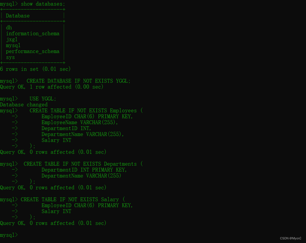 创建数据库YGGL