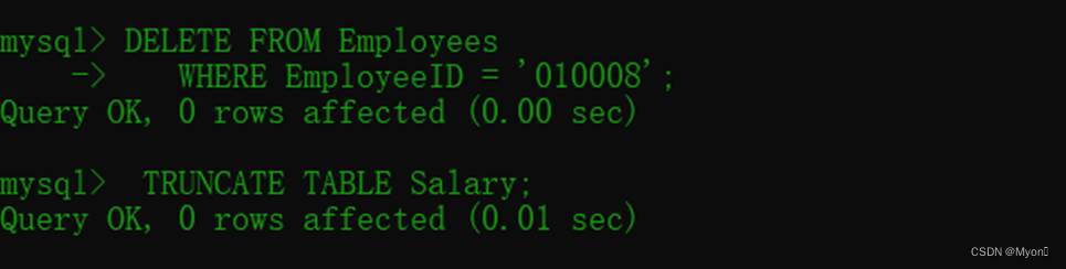 使用truncate table语句删除Salary表中所有行