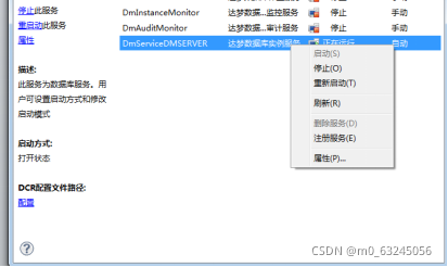 可以使用DM服务查看器停止需要备份的数据库实例服务,点击“开始-所有程序-达梦数据库-DM服务查看器-右键停止”。