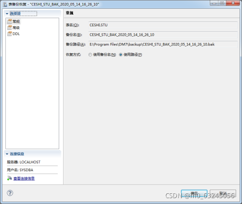 备份完成后,点击库备份,表备份,表空间备份会出现备份的文件。