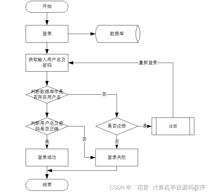 登录模块有许多规则,这些规则是用来限制用户权限的,用户进入系统前要进行登录,登录成功后方可对相关权限的操作。登录流程如下所示。