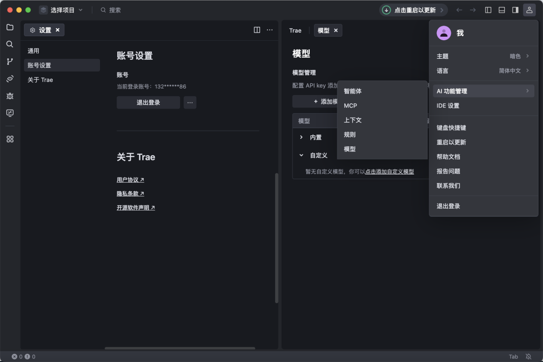 TRAE 新增自定义模型服务商、进程资源管理器,国际版支持银联支付!