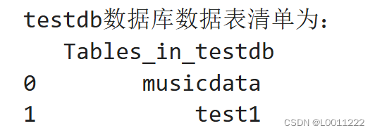 print('testdb数据库数据表清单为:\n',musicadatalist)