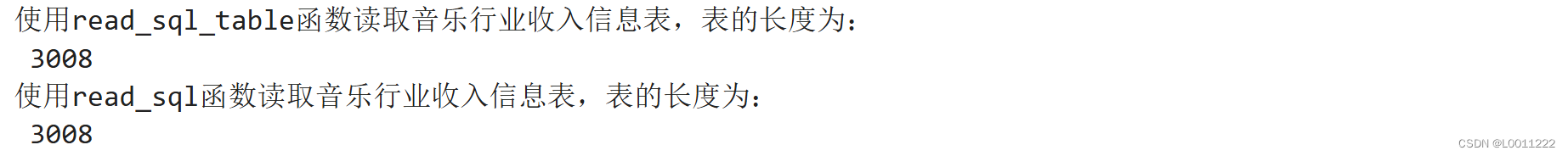print('使用read_sql函数读取音乐行业收入信息表,表的长度为:\n',len(musicdata))