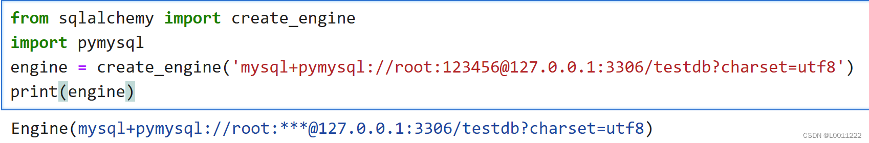engine = create_engine('mysql+pymysql://root:123456@127.0.0.1:3306/testdb?charset=utf8')