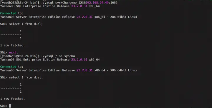 yasql 是 YashanDB 自带的命令行管理工具,功能类似于 Oracle 的 sqlplus,适合 DBA 和开发人员直接操作数据库。